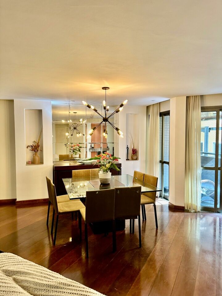 Excelente apartamento estrategicamente localizado entre escolas ,supermercados , hospitais e parques .Com 200m² de área útil reúne conforto e funcionalidade , o imóvel oferece uma sala com 03 ambientes com lareira , 04 dormitórios todos com sacada sendo 03 suítes , cozinha espaçosa , dependência completa de empregada ,depósito privativo no subsolo ,03 vagas de garagem cobertas em linha ,piscina aquecida ,salão de festas, churrasqueira, sala de ginástica , sauna e portaria e segurança 24 horas .